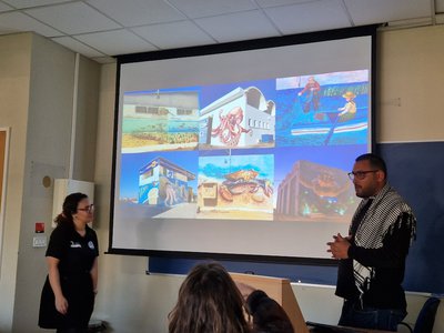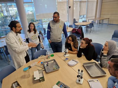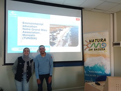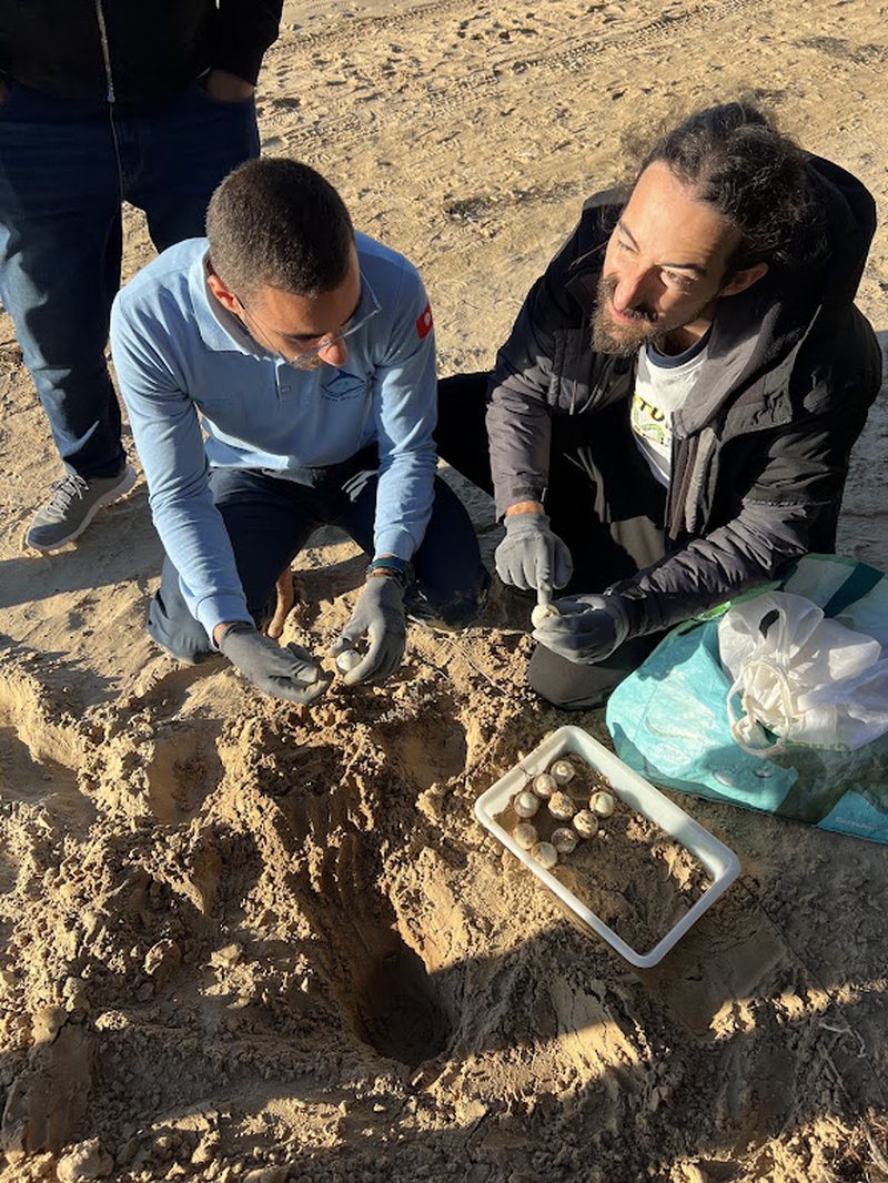 Poslijepodne prvog dana bilo je rezervirano za udrugu Notre Grand Bleu iz Tunisa, koji djeluju na Kuriat otoku. Bave se znanstvenim monitoringom i stručnjaci su za očuvanje bioraznolikosti, posebno vrsta poput morske kornjače Glavate želve (Caretta caretta), morske ptice mala čigra (Sterna albifrons) i livade Posidonije (Posidonia oceanica). Kroz simulacijsku radionicu pronalaska gnijezda morskih kornjača upoznali smo se s metodom terenskog monitoringa, prepoznavanjem tragova i samog gnjezda. Posebno smo istaknuli utjecaj ljudskih aktivnosti te način na koji klimatske promjene utječu na omjer spolova kornjača, budući da on ovisi o temperaturi inkubacije.