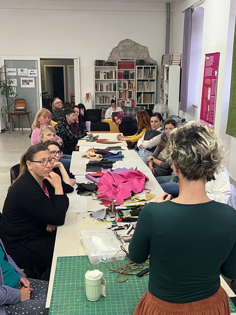 Pod vodstvom Dani Anđić iz obrta ShPula, sudionice su izrađivale unikatne komade nakita od ostataka kože. Tijekom radionice nastali su brojni kreativni i raznoliki radovi – ogrlice, naušnice i narukvice – koji su pokazali koliko se maštom i osnovnim tehnikama mogu transformirati odbačeni materijali u estetski vrijedne i funkcionalne predmete. Polaznice radionice su se pritom upoznale s osnovnim alatima i tehnikama rada s kožom te dobile poticaj za daljnje samostalno stvaranje i razvijanje vlastitih kreativnih vještina.