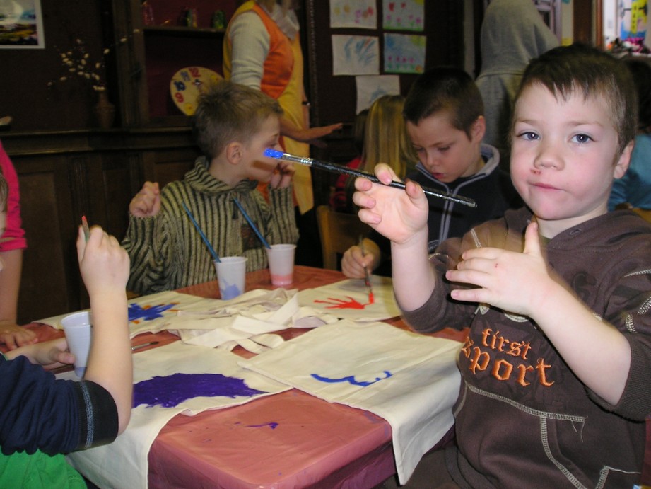 U drugom dijelu radionice svako je dijete dobilo platnenu vrećicu te su je oslikali bojama za platno. Tehnika oslikavanja platnenih vrećica potiče kreativnost djece te oni oslikavaju motive koji prenose poruku o potrebi zaštite okoliša (priroda, cvijeće, sunce, stablo).